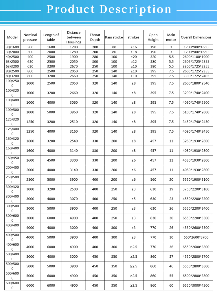 * Kogu EL-i voolujooneline disain, kuumtöötlusraam, suure jäikusega töölaud, valikuline mehaaniline kompensatsiooniseade täpseks painutamiseks.