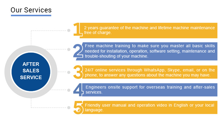 V: Kui masinal on probleeme, tarnime masina garantiiajal tasuta osi. Kuigi pakume ka tasuta elukestvat müügijärgset teenindust. Seega, kui teil on kahtlusi, andke meile lihtsalt teada, me pakume teile lahendusi.